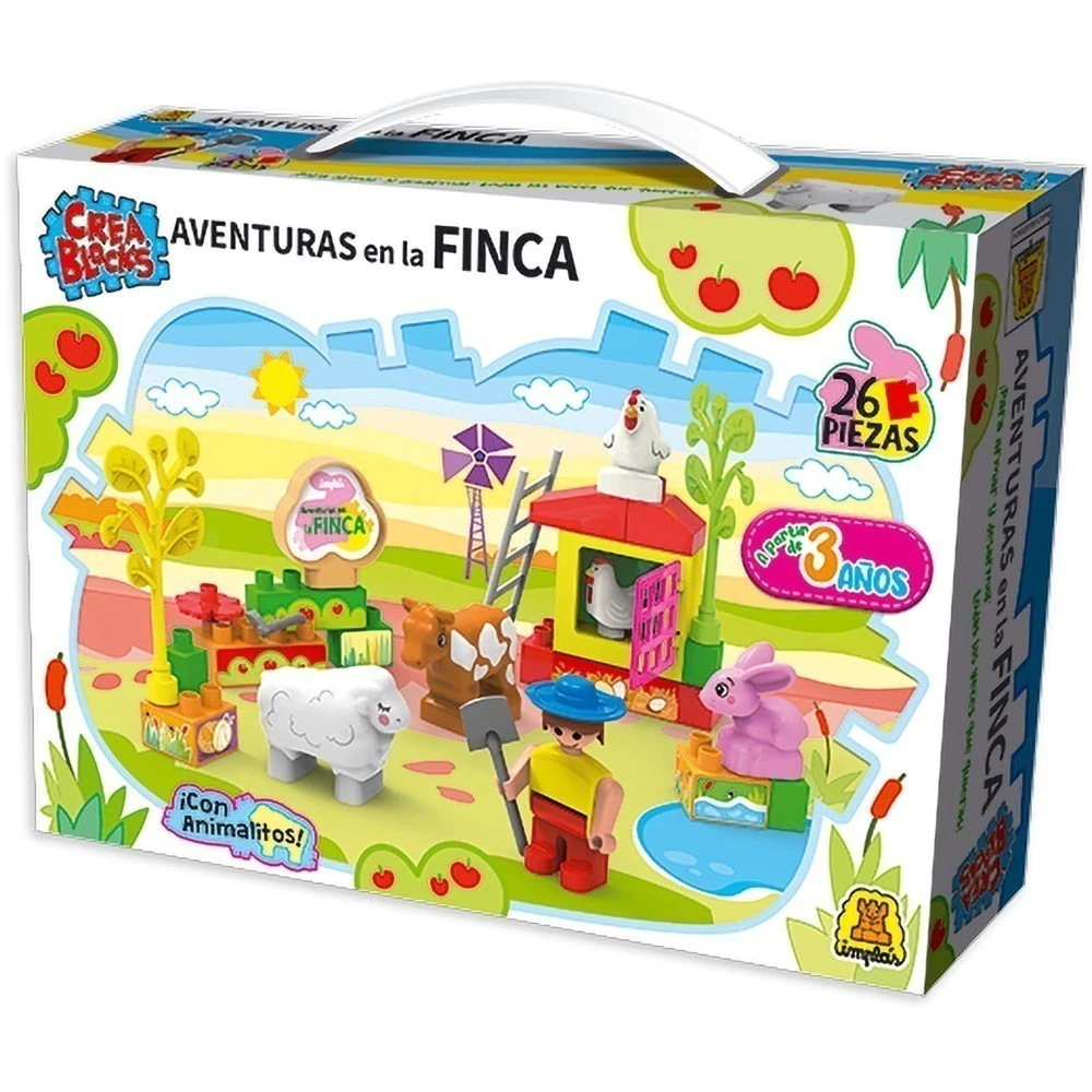 Este set recrea una divertida jornada rural, con piezas para construir animales, herramientas y escenarios de la finca. Perfecto para estimular la narración y el juego simbólico. Incluye una escena para dar vida al entorno, potenciando la creatividad y la coordinación motriz.